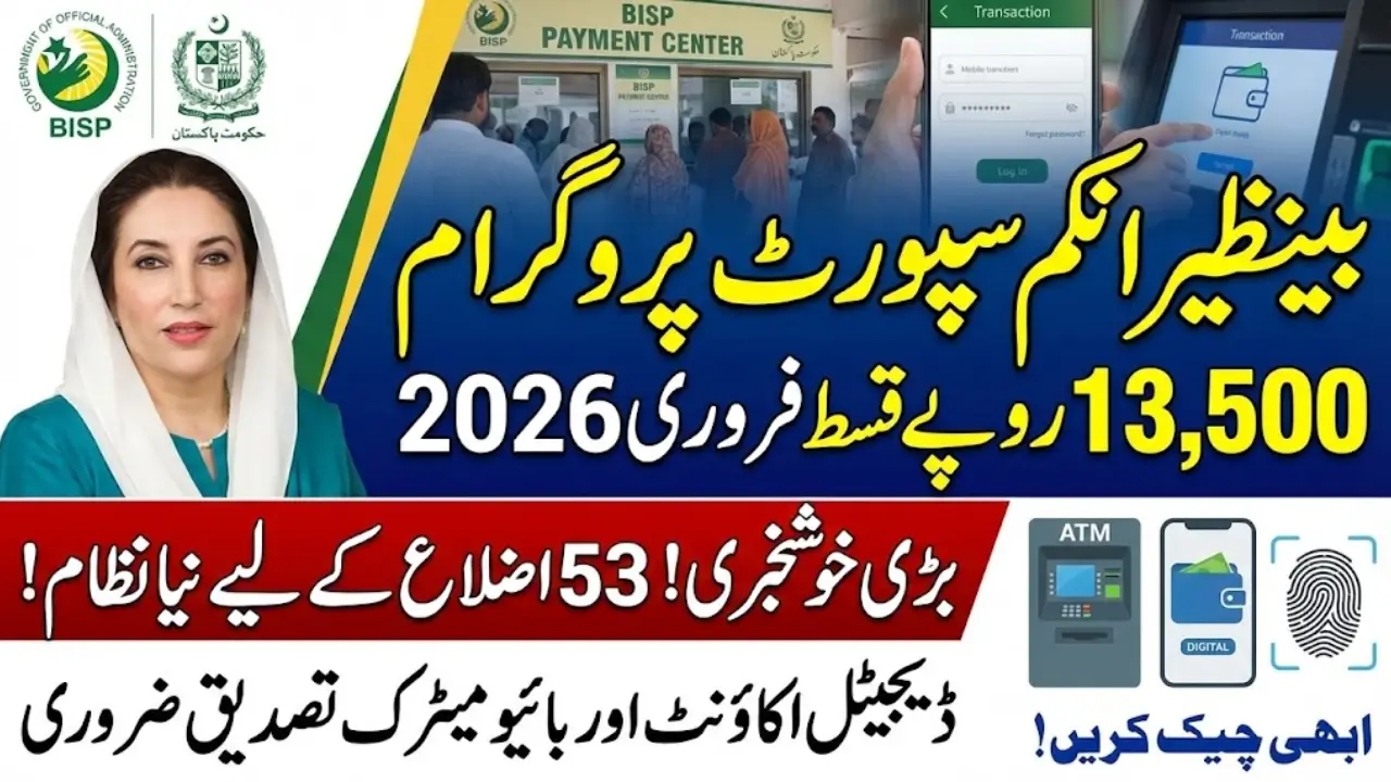 The Benazir Income Support Programme (BISP) is providing financial relief to low-income families in Pakistan with the release of Rs. 13,500 in February 2026. This installment covers 53 districts in the first phase and focuses on vulnerable households, including women-headed families, widows, orphans, and families with disabled members. The government has introduced digital accounts and biometric verification to ensure secure and transparent payment distribution.