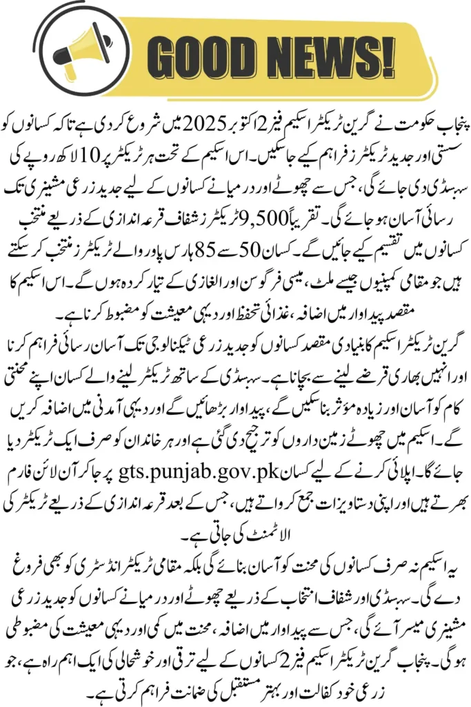 CM Punjab Green Tractor Scheme Phase 2 January 2026 New Updates