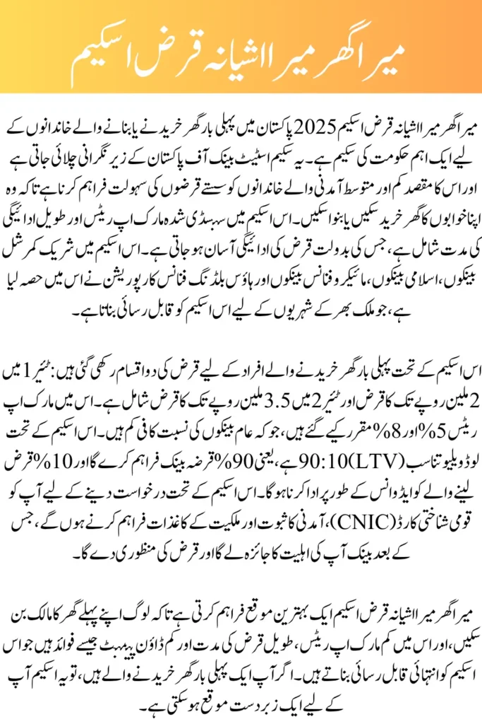 Owning a home is a dream for many families, but with the rising cost of land and construction, it can feel like an impossible goal. To help make homeownership more accessible, the Mera Ghar Mera Ashiana Loan Scheme 2025 was introduced by the Government of Pakistan under the supervision of the State Bank of Pakistan (SBP). This scheme is designed specifically for low- and middle-income families who are seeking to buy or build their first home. With affordable loan options, subsidized markup rates, and flexible repayment terms, itโs a game-changer for many.
