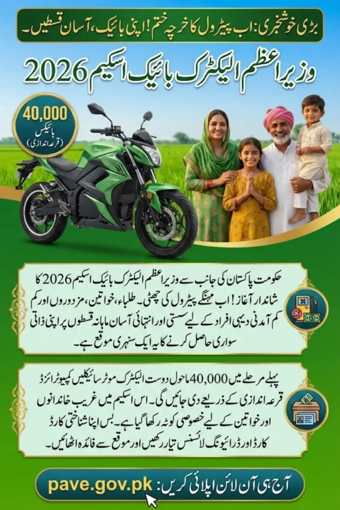 The PM Bike Scheme 2026 is a great opportunity for youth, students and low-income citizens. This scheme not only provides low-cost and eco-friendly rides but also plays a significant role in reducing transportation problems. Government subsidies, easy installments and special quotas further increase public confidence. This scheme is a step towards a sustainable and modern Pakistan for the future, where safe, affordable and clean energy-based transport will be within the reach of the common citizen.