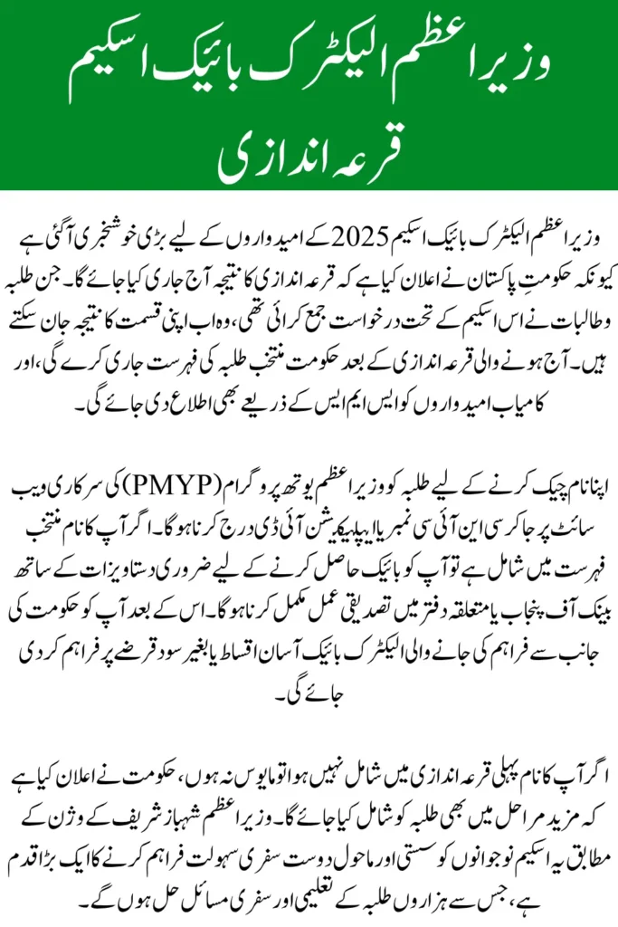 The announcement of the PM Electric Bike Scheme balloting result is a major milestone in Pakistan’s journey toward eco-friendly transportation and youth empowerment. By offering electric bikes, rickshaws, and loaders on subsidized terms, the Punjab Government is not only supporting sustainable travel but also helping thousands of citizens improve their livelihoods.