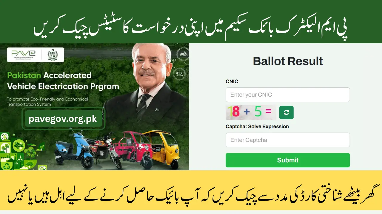 Not sure if you’ve been chosen? No worries! Checking your status is simple. Just head over to the official PAVE portal, find the Balloting Results section, and enter your CNIC number (without dashes) to see if you’re among the lucky winners. This quick step will give you all the clarity you need whether you’re about to own your own electric bike, rickshaw, or loader, or if you’ll need to wait for the next round of applications.